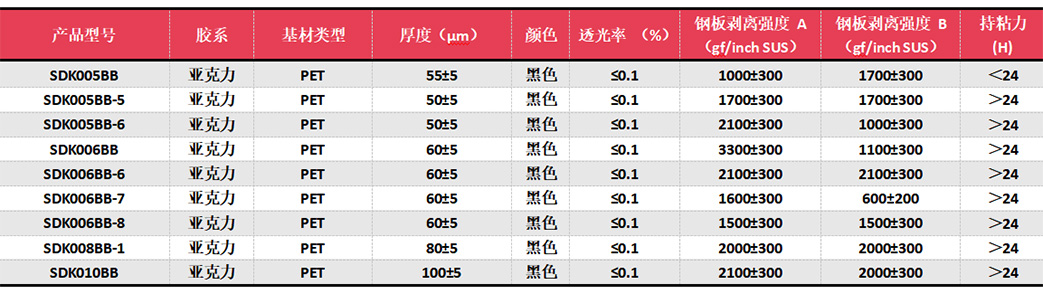 ? 遮光胶带为复合基材的双面胶带,采用双层黑 - 黑色或黑 - 白色