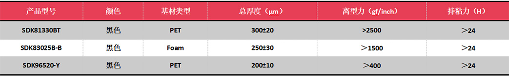 应用阐述:TFT-LCD背光源、LCM边框遮光、固定