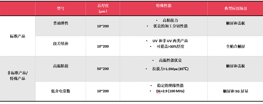 应用阐述:OGS屏幕保护,显示器面板等各种光学膜片以及触摸屏 ITO 玻璃的粘接