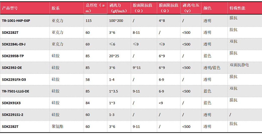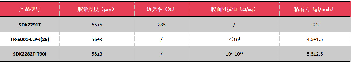 应用阐述:玻璃、触屏组件及ITO薄膜类产品的保护;CPI模切换膜用